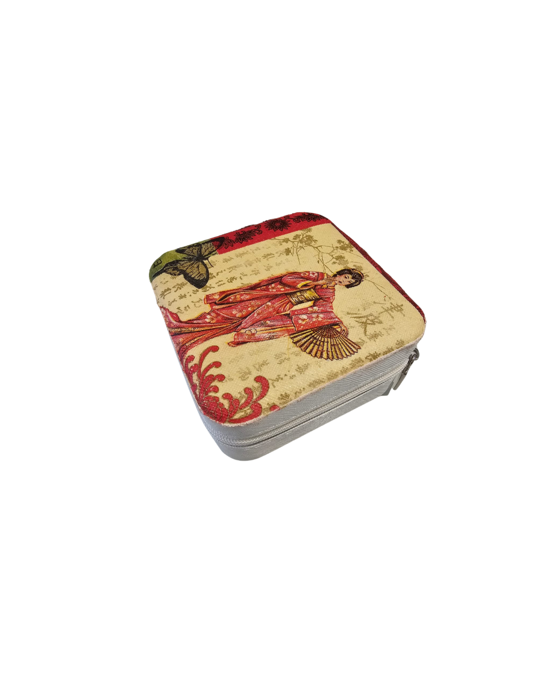 Mini porta joia Viagem com zíper, sem espelho. Material do interior: veludo Material exterior: couro sintético Quantidade de compartimentos: 14 Largura: 10cm Altura: 5cm Profundidade: 2.5cm